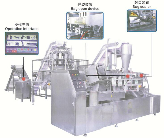 本機是我司引進歐洲同類機型先進技術,改良后的新一代全自動卷膜成型包裝機,集制袋、計量、灌裝、封口于一體。專門針對自立袋設計的全自動卷膜,制袋,灌裝,封口一體化機器。另外可以自動沖易撕邊,充掛孔。配套不同的下料系統(tǒng)可以滿足粉劑、顆粒、液劑等物料的包裝要求。本機制袋、封口和充填是相對獨立的系統(tǒng)。通過機械聯(lián)動及可編程序控制器(PLC)進行協(xié)調(diào)聯(lián)動,滿足不同袋子尺寸的要求。