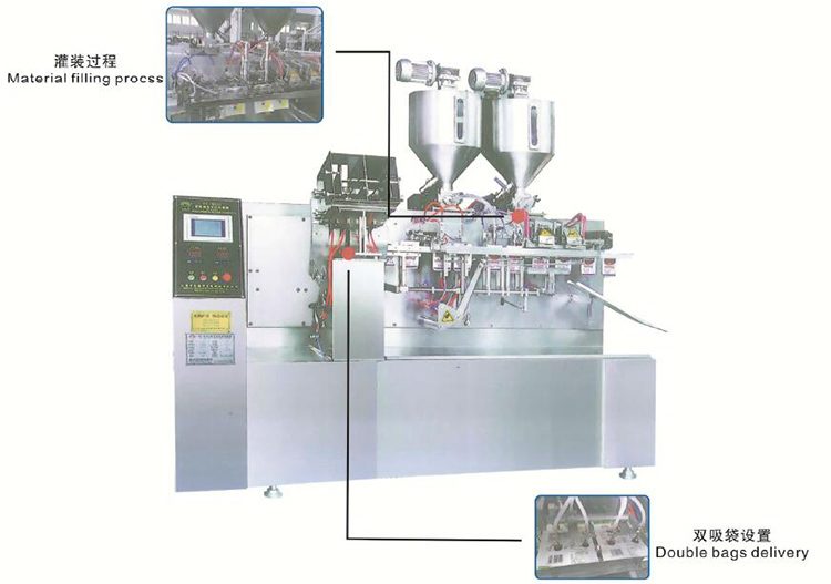 5、配置不同的充填機構(gòu),可以實現(xiàn)粉劑、液體、顆粒、醬類的不同包裝。
